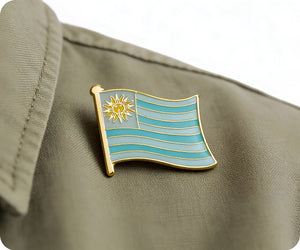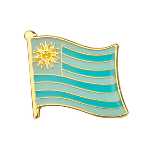 Rock your Uruguayan pride with this distinctive flag pin badge! Showcasing the iconic white and blue stripes with the Sun of May, it's a brilliant way to celebrate South American heritage or express your connection to Uruguay. Attach it to your lapel, backpack, or anywhere you want to add a touch of national flair. A mighty little badge packed with Uruguayan spirit!