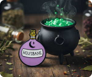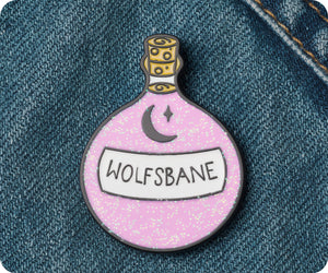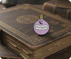 Unleash your inner werewolf lover with our Wolfsbane Potion Pin Badge! This quirky pin is perfect for adding some magic to any outfit. Show off your love for all things supernatural with this playful accessory. No moon phases necessary.