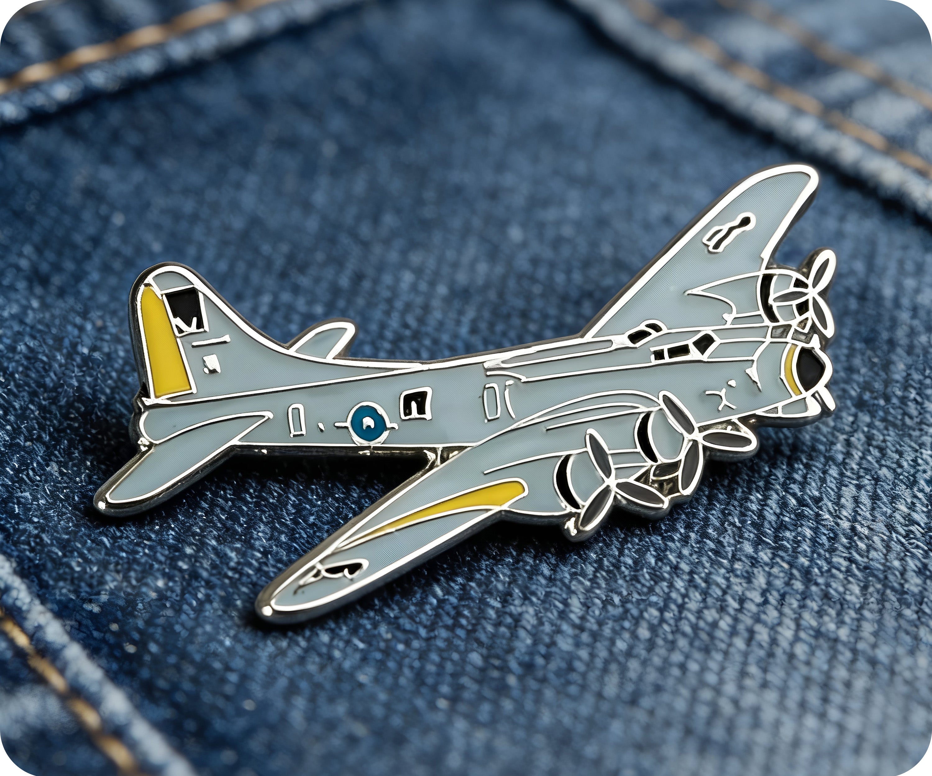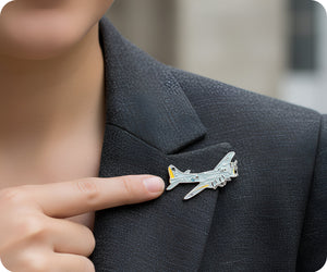 Introducing our WW2 Bomber Aeroplane Pin Badge - perfect for history buffs and aviation enthusiasts alike! Show off your love for vintage planes with this unique and quirky accessory. Makes a great addition to any pin collection. (No puns intended!)