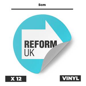 12 X Reform UK Vinyl Round 5cm Stickers