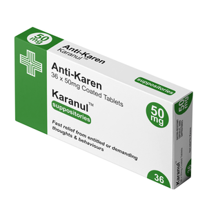 - π Crafted with a realistic prescription design, the Anti-Karen Pill Medication Box takes a playful jab at the infamous "Karen" persona, offering a lighthearted escape from the everyday challenges of dealing with demanding individuals.