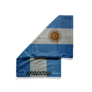 Celebrate national pride with this beautifully designed Argentina flag neck gaiter, featuring the iconic sky-blue and white vertical stripes accented by the radiant "Sun of May." This powerful emblem, centered proudly on the front, is a historic symbol of freedom and resilience, rooted in the country's struggle for independence. The rear side includes a clean continuation of the flag pattern with a bold, stylized “ARGENTINA” text at the base, adding a sharp contemporary edge to the traditional design.
