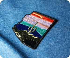 Add a touch of desert charm to your wardrobe with this quirky Arizona iron-on patch! Featuring the iconic state silhouette paired with a cheerful saguaro cactus, it's the perfect way to show your love for the Grand Canyon State. At 7 x 5.3cm, this vibrant patch sticks to jackets, bags, hats, and more with just a hot iron. Whether you're a proud Arizona native or a desert enthusiast, this playful design brings instant personality to any fabric project.