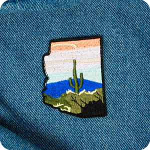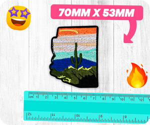 Arizona State Shape & Cactus Desert Iron On Patch (7 x 5.3cm)