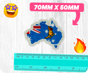 Australia Country Shape Flag Kangaroo Iron On Patch (7 x 6cm)