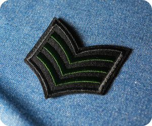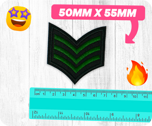 Black & Green Sargent Rank Insignia Iron On Patch (5.5 x 5cm)