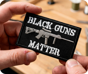 Make a statement with this Black Guns Matter Assault Rifle iron-on patch! Measuring 7.8 x 5cm, this bold design speaks volumes for firearms enthusiasts and Second Amendment supporters. Perfect for customising jackets, vests, bags, or gear with unapologetic attitude. Simply heat and press to apply—no debate needed, just instant impact. Whether you're passionate about your rights or love provocative style, this patch delivers serious edge and conviction to your wardrobe.