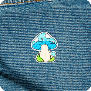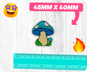 Blue Mushroom Shrooms Iron On Patch (4 x 4.5cm)
