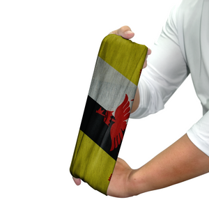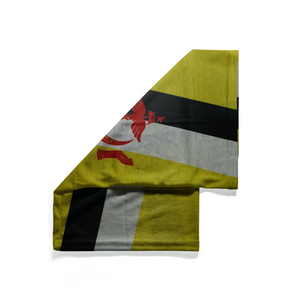 This neck gaiter captures the essence of Brunei’s national identity with a bold, elegant design rooted in history and symbolism. The rich golden yellow background dominates the gaiter, reflecting the royal color of Brunei's monarchy. Running diagonally across the fabric are two striking stripes—black and white—representing the chief ministers of the nation, creating a sleek contrast that enhances the visual depth.