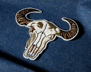 Buffalo Skull Wild West Patch Iron On (8 x 7cm)