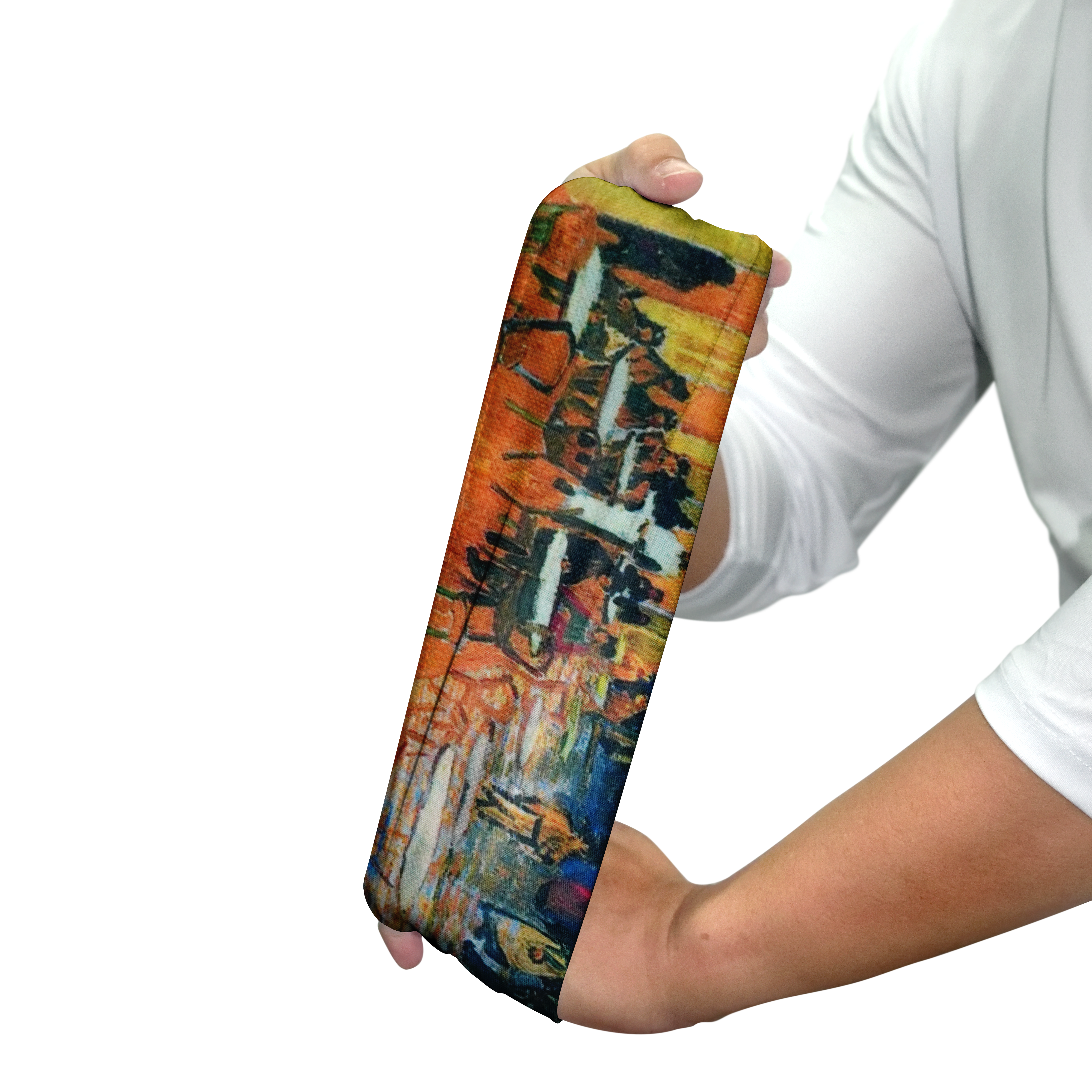 First painted in 1888, Van Gogh’s Café Terrace at Night is a celebration of connection, quiet nightlife, and the beauty of simple places. With this snood, you carry that timeless serenity into your wardrobe. Ideal for artists, romantics, or anyone with a love for wearable culture, this gaiter brings fine art off the wall and into the world.