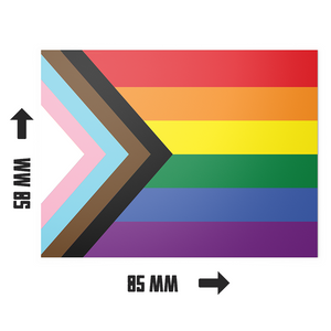 Brighten up your locker, laptop, or bedroom with these 20 Progress Pride Flag Stickers! Each sticker, measuring in at 8.5cm x 5.5cm, is just the right size to make a bold statement without taking up too much space. There's more than enough to spread around the love, 'cause 20 flags are better than one! #PRIDE