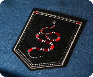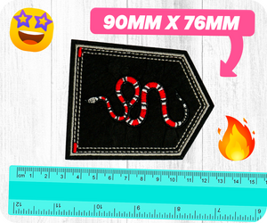 Strike a bold statement with this eye-catching coral snake patch! Featuring a striking red and black design set against a protective shield backdrop, this 9 x 7.6cm iron-on patch brings serious style to jackets, backpacks, and beyond. Perfect for wildlife lovers and adventure seekers who appreciate nature's most mesmerizing creatures. Simply heat and press to attach—no sewing required. Whether you're customizing gear or adding flair to your collection, this vibrant patch is sure to turn heads and spark conversations.