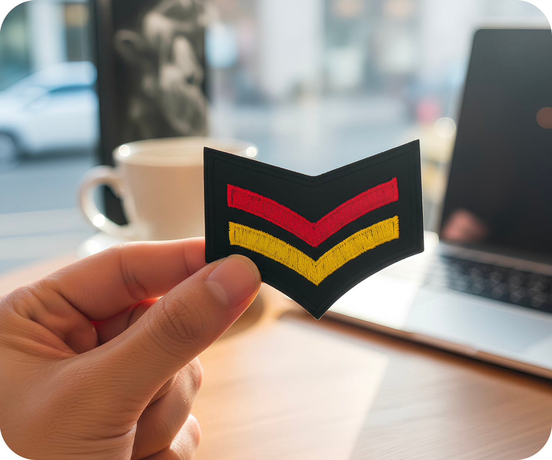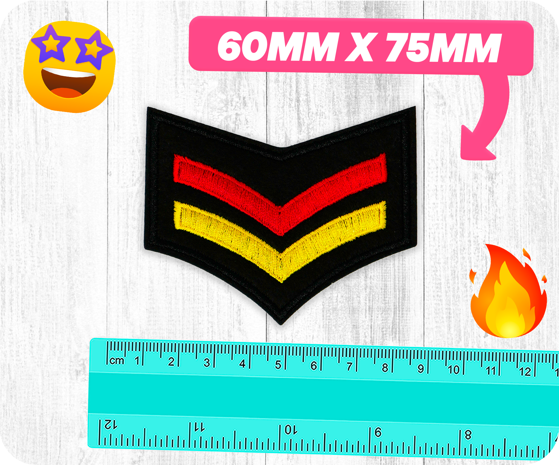 Corporal Yellow Red Germany Rank Army Iron On Patch (6 x 7.5cm)