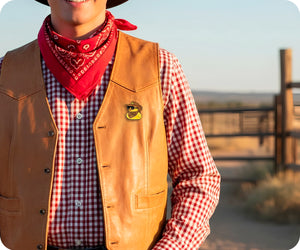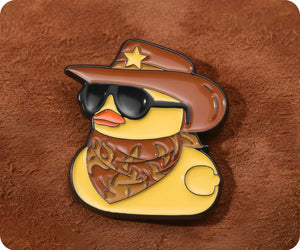 Saddle up and show off your playful side with this Cowboy Rubber Duck Pin Badge. This quirky accessory adds a touch of humor to any outfit, making it the perfect accessory for those who don't take themselves too seriously. (Giddy up!)