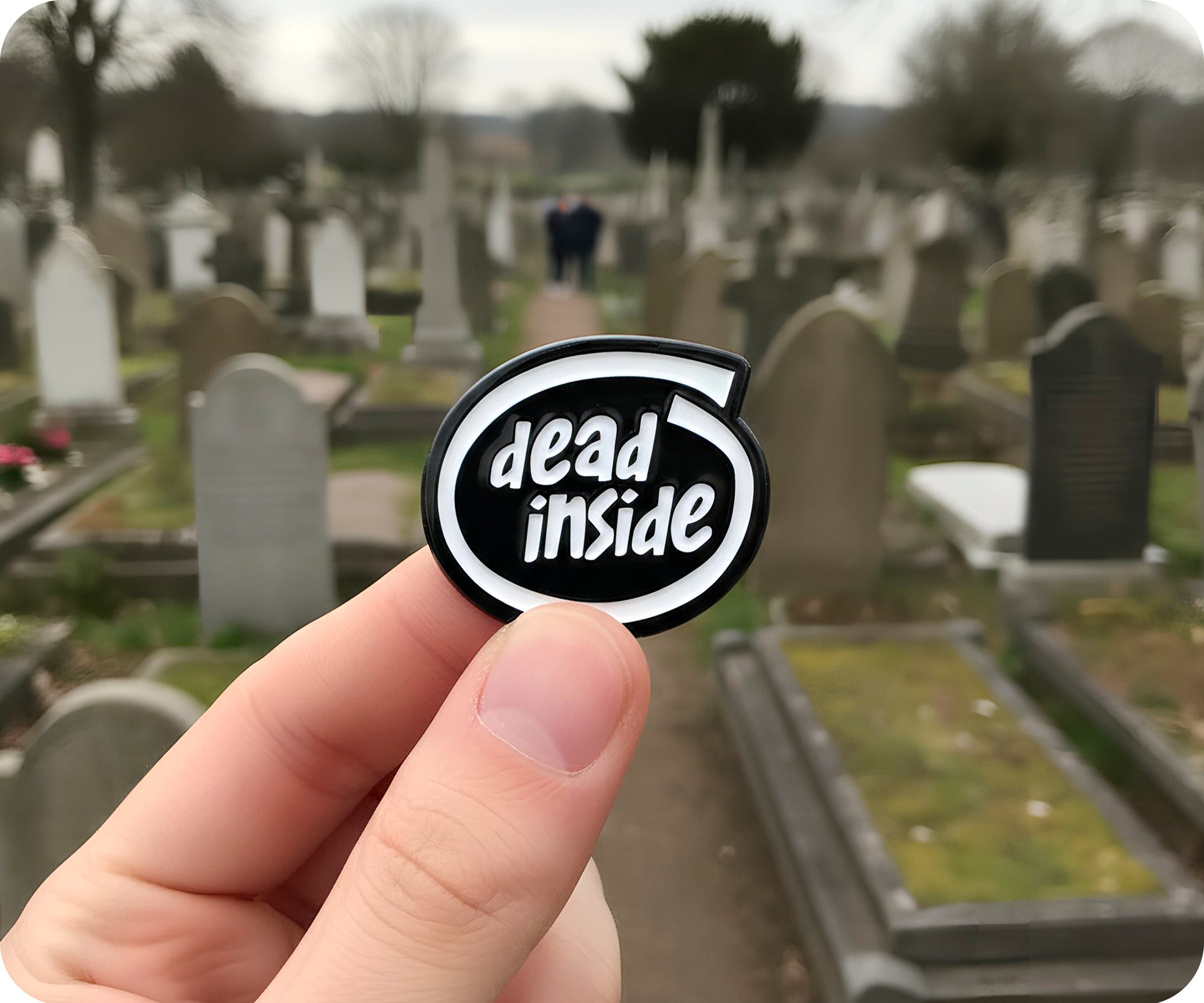 Embrace your inner tech-zombie with our Dead Inside Computer Pin Badge. Show off your love for all things digital and undead with this quirky accessory. Perfect for anyone who spends too much time glued to their screens. (Warning: may cause envy among non-zombie coworkers).