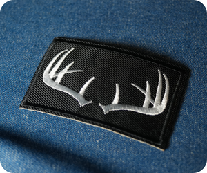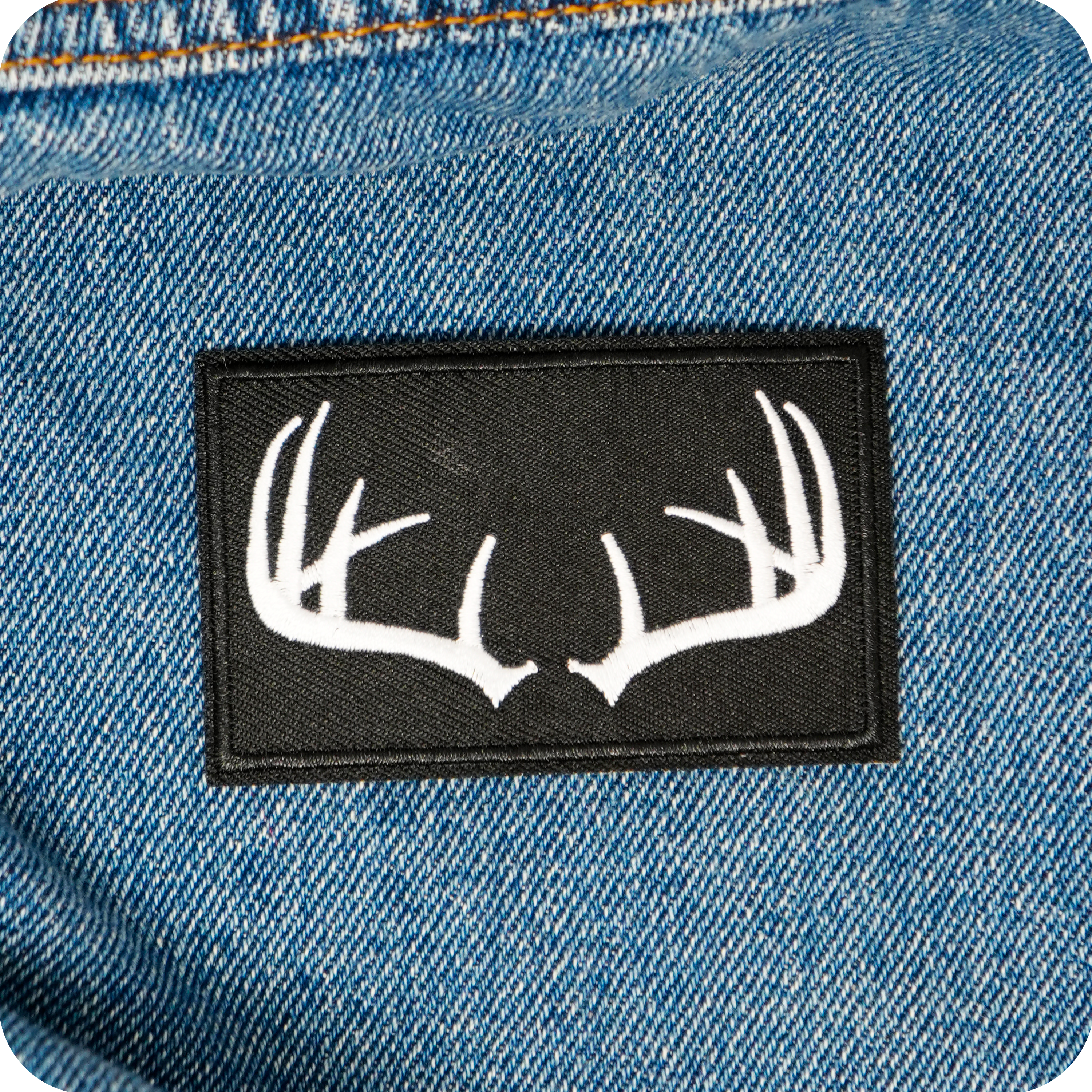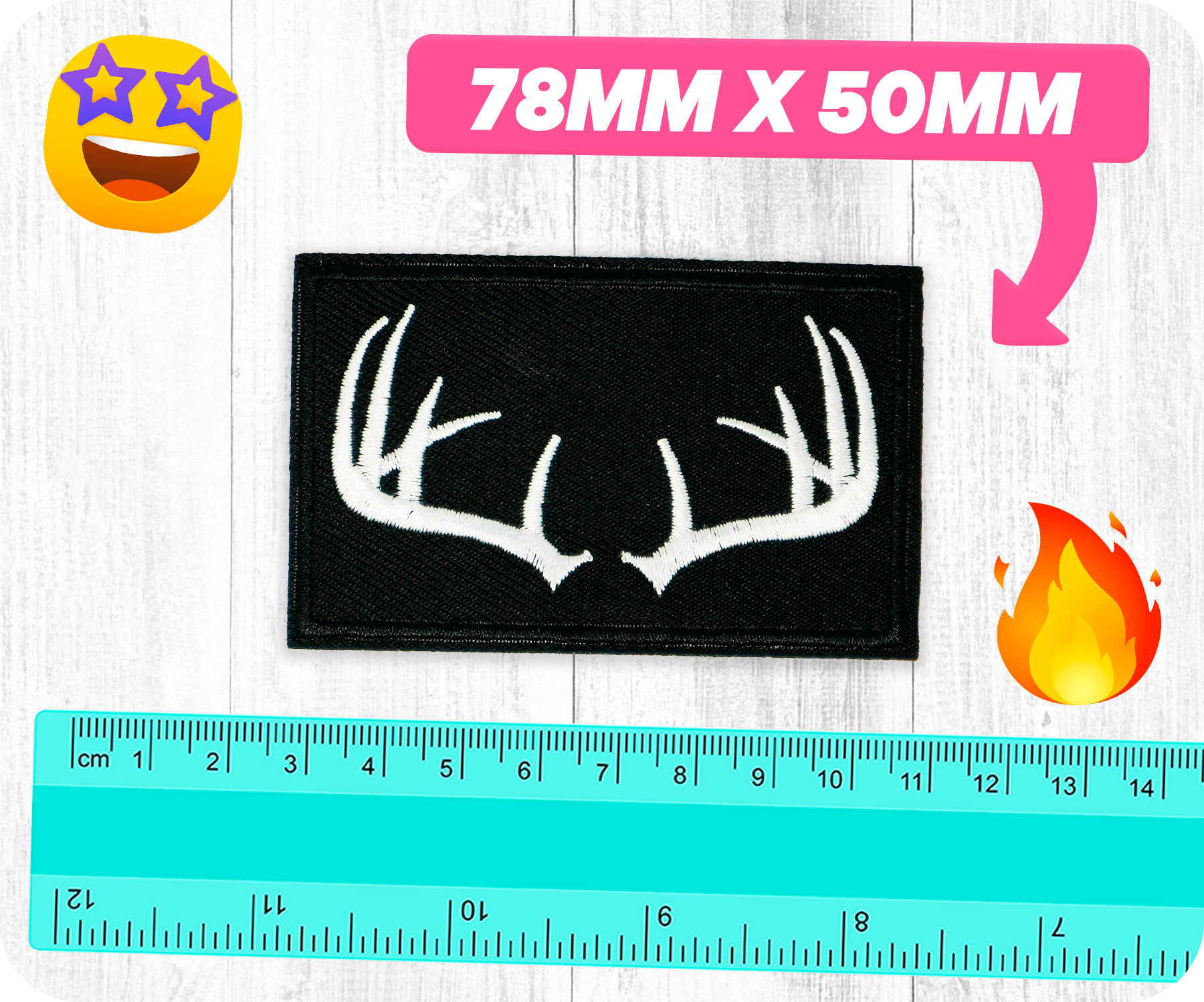 Deer Antlers Hunting Black Iron On Patch (7.8 x 5cm)