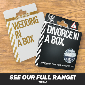 Celebrate the lighter side of breakups with this Divorce in a Box novelty set, designed to bring laughter and fun to life’s toughest moments. Packed with quirky and cheeky items, it’s a tongue-in-cheek way to mark the end of a relationship or to gift a friend who’s moving on.
