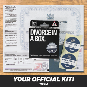 Inside the box, you’ll find a relationship termination official application form, a fake divorce certificate, and extras like a drinks voucher, dating coupon flyer, and a party horn to add to the fun. To top it off, you also get two official “Single” stickers so everyone knows you’re ready to start fresh.