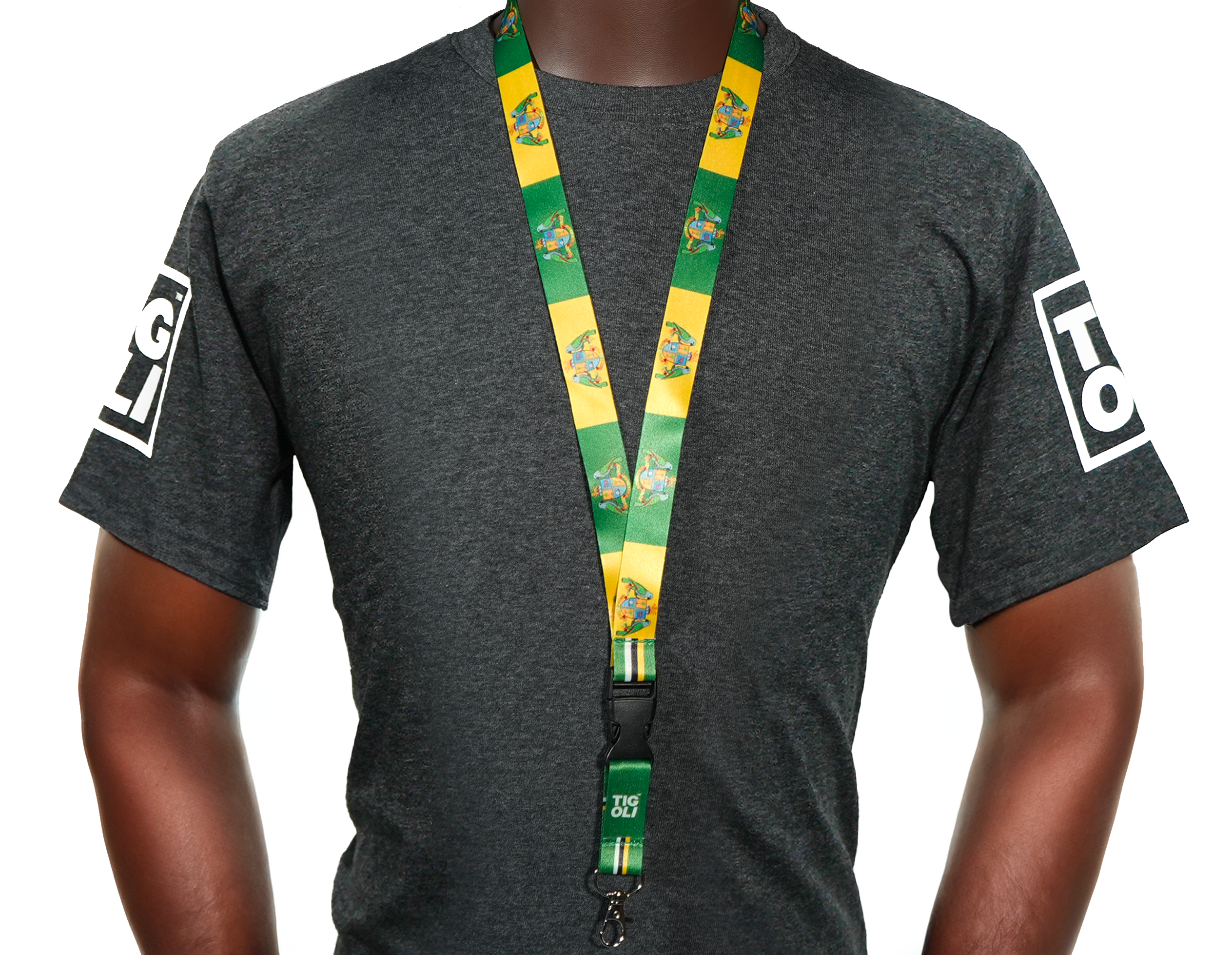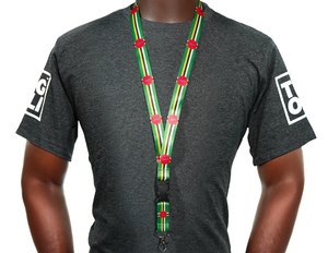 Dominica Flag Lanyard – Green, Yellow & Black Design with Coat of Arms and Parrot Crest