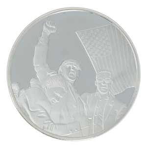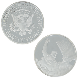 This Donald J. Trump 47th President Silver Commemorative Coin pays tribute to a defining figure in modern American politics. The front features a highly detailed version of the Presidential Seal of the United States, encircled by the words “47th President of the United States – Donald Trump.” The reverse shows a dramatic and symbolic scene of President Trump among a group of supporters, one fist raised in defiance and strength, alongside a large American flag—symbolizing patriotism, resilience, and leadership.