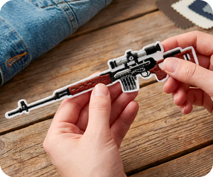 Command attention with this legendary Dragunov SVD Sniper Rifle patch! This elongated 15 x 3cm iron-on celebrates one of history's most iconic firearms with authentic detail and Cyrillic lettering. Perfect for military history enthusiasts, firearms collectors, and tactical gear customizers, it makes a bold statement on jackets, bags, or vests. Simply heat and press for secure attachment. Whether you're honouring military heritage or showcasing your passion for legendary weaponry, this patch delivers serious credibility and conversation-starting style.