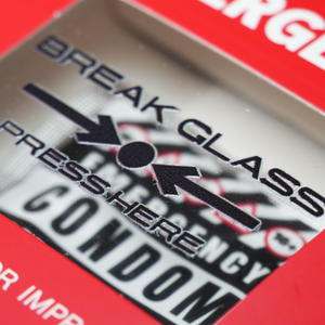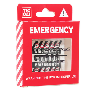 Inside, you’ll find a sealed condom wrapped in a matching emergency design, making it both funny and practical. The packaging includes playful details such as “Break Glass” and “Press Here” graphics, adding to the tongue-in-cheek theme and making this an unforgettable present.