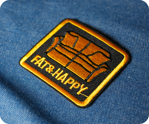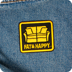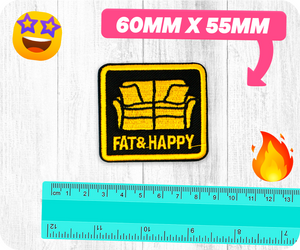 Fat & Happy Funny Couch Sofa Iron On Patch (6 x 5.5cm)