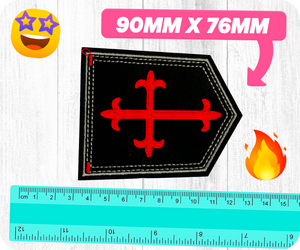 Gothic Crusader Red Cross On Black Shield Iron On Patch (9 x 7.5cm)