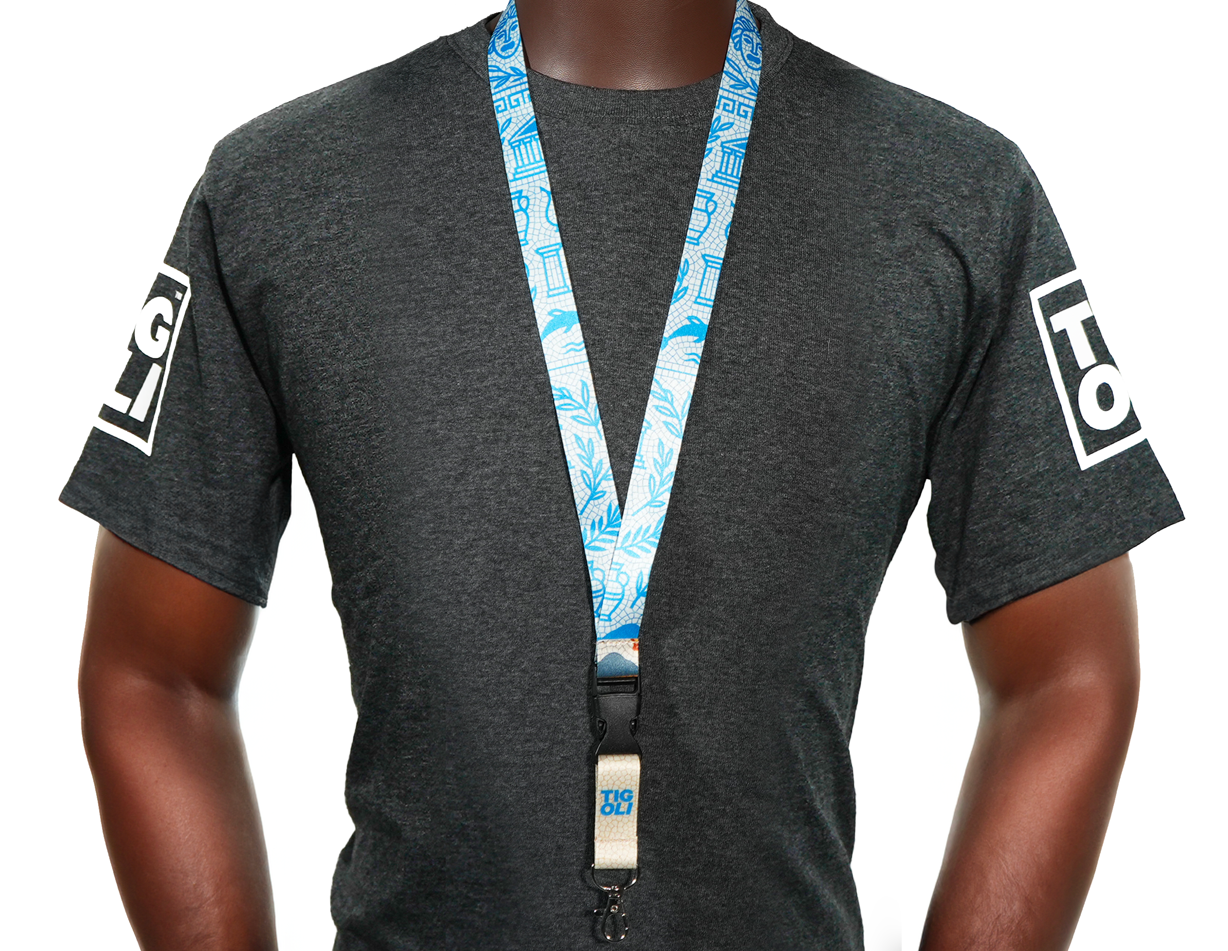 Greece Lanyard – Greek Mosaic “Ελλάς” Design with Olive Branch & Blue Meander Pattern