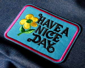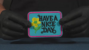 Have A Nice Day Blue & Pink Patch Iron On (9 x 7cm)