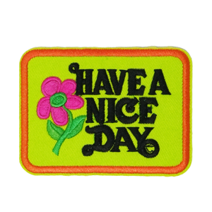 Zap your wardrobe with electric positivity using this eye-popping Lime Green & Gold Have A Nice Day patch! Measuring a perfect 9 x 7cm, this vibrant iron-on instantly transforms boring bags, jackets, and jeans into happiness headquarters. Just apply with heat and watch your everyday items become joy-spreading machines! Perfect for adding a zingy pop of color to your style or brightening someone's day with a crafty gift. Warning: may cause spontaneous smiling and an irresistible urge to spread good vibes!
