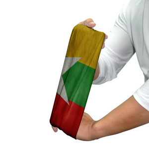 Celebrate the unity and resilience of Myanmar with this bold and expressive neck gaiter, featuring the national tricolor of red, green, and yellow with a prominent white star at the center. This iconic design symbolizes peace, unity, and the diverse ethnic groups that make up the nation's identity. Worn with pride, this gaiter is more than just an accessory—it's a tribute to a proud heritage and a hopeful future.