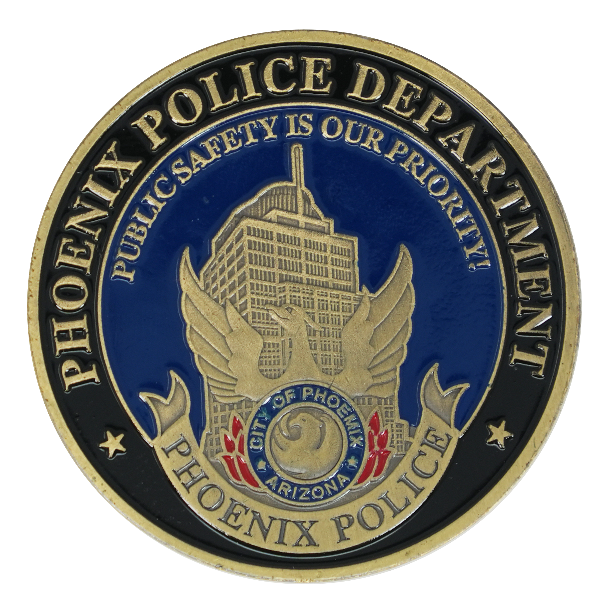 👮 Phoenix PD Reverse – Full-color badge with cityscape and police motto