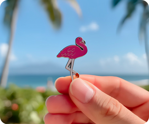 Ready to let your personality fly high? Our Pink Flamingo Pin Badge will add some playful pizzazz to your wardrobe, making heads turn and lighten up any outfit. No need to forage for food closer to the water - this adorable 2.5cm x 1.7cm pin can satisfy all your style cravings instantly!