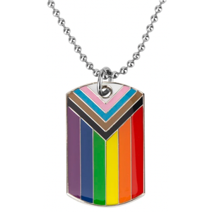 Progress Pride LGBTQI+ Flag Dog Tag Necklaces | Metal Enamel