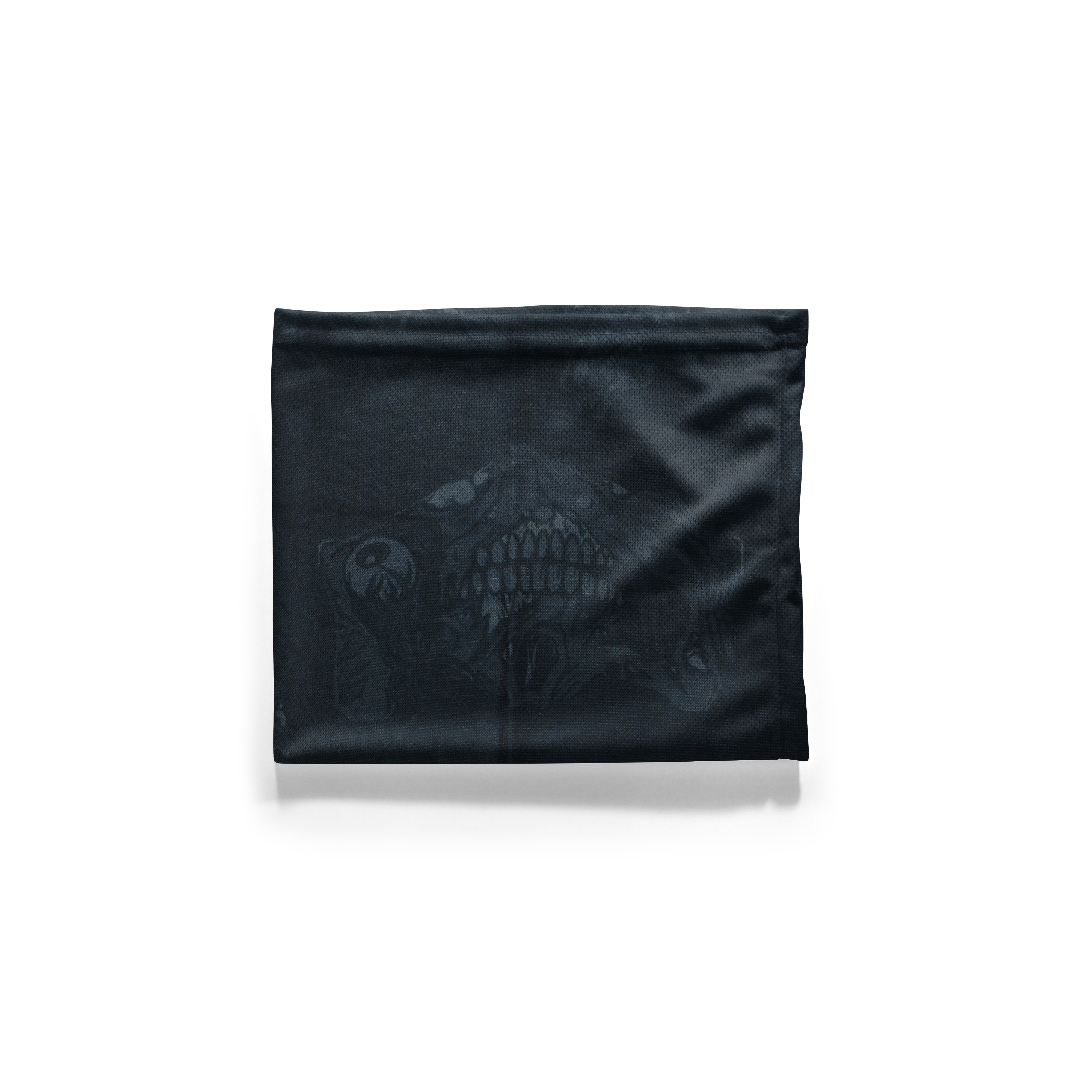 This design pays tribute to cult horror, classic zombie flicks, and punk rebellion. The subtle skull-print background adds extra texture and edge without overpowering the central gory grin. If you live for the grotesque, the graphic, and the gloriously undead, the “Rotface” snood is your new favorite layer of nightmare fuel.