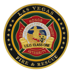 Celebrate bravery, service, and tradition with this Saint Florian & Las Vegas Fire & Rescue Commemorative Coin. One side depicts Saint Florian, protector of firefighters, dousing flames and guiding a fellow first responderāan enduring symbol of courage and spiritual strength. The reverse features the bold, full-color emblem of the Las Vegas Fire & Rescue Department, proudly highlighting the departmentās I.S.O. Class One rating and core values: Duty, Honor, Trust, and Integrity.