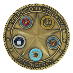This Saint George & Operation New Dawn Commemorative Coin honors faith, courage, and the men and women who served in a defining chapter of U.S. military history. One side displays Saint George in dramatic detail, mounted on horseback as he defeats a dragon—a powerful symbol of protection and bravery. The reverse marks Operation New Dawn with the date March 20, 2003, and showcases six full-color service emblems representing the U.S. Marine Corps, Army, Air Force, Navy, Coast Guard, and Department of Defense.