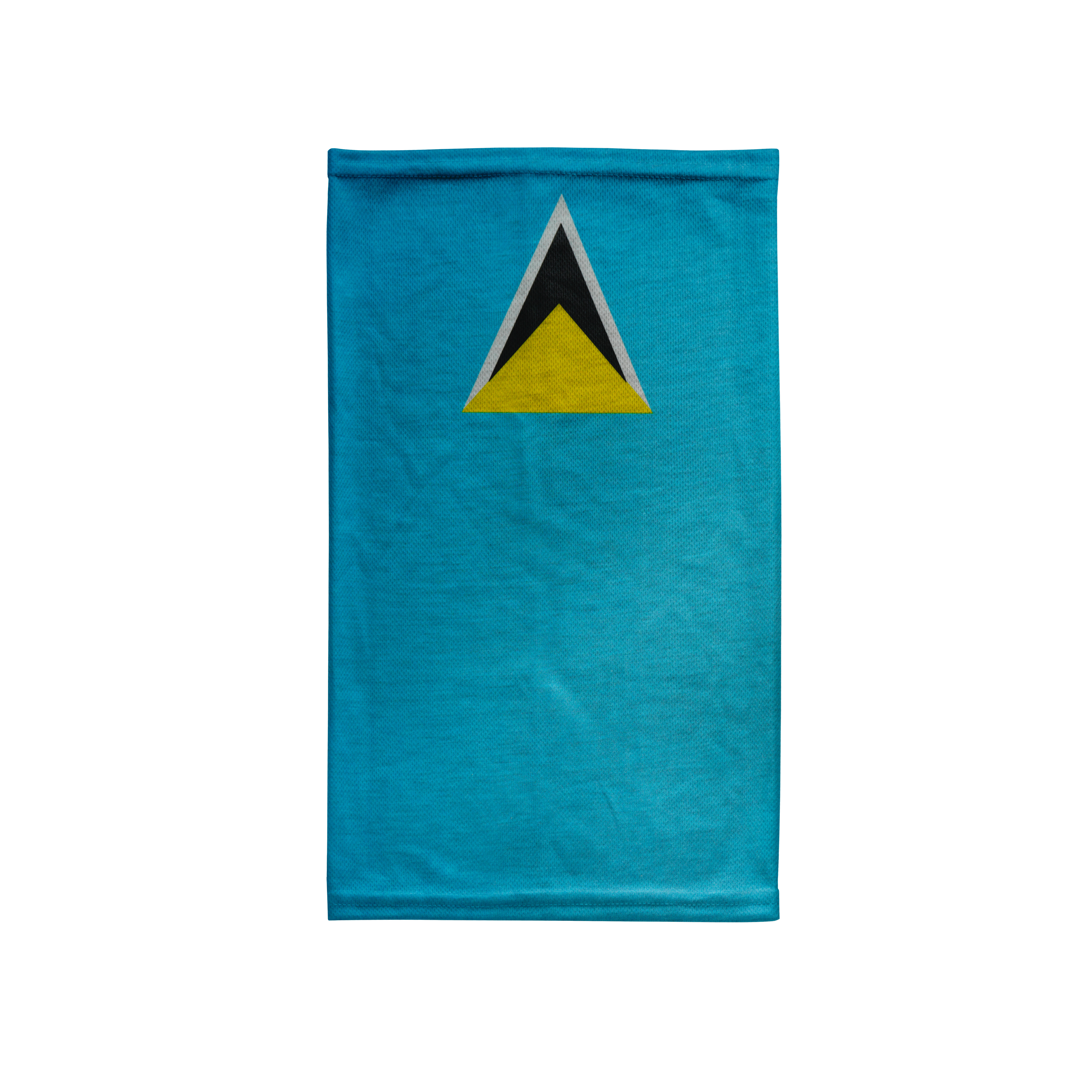 Display your Saint Lucian pride wherever you go with this Saint Lucia Flag multifunctional neck gaiter, featuring the iconic blue background with the black, white, and gold triangle emblem. This modern, eye-catching design captures the essence of Saint Lucia’s national identity while providing everyday versatility and comfort. Perfect for festivals, outdoor sports, travel, or simply adding a touch of island pride to your day.