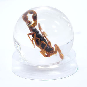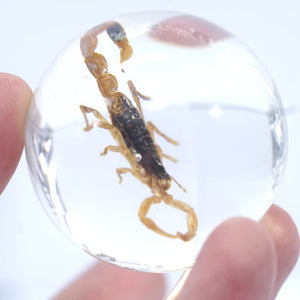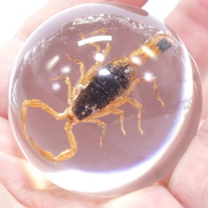 Get up close and personal with the Real Life Scorpion Fun Novelty Educational Insect Resin Ball Display. This unique display ball contains a real scorpion encased in resin, making it a fun and educational addition to any collection. Perfect for anyone with an interest in insects or looking for a quirky conversation piece. (Warning: may cause involuntary shudders.)
