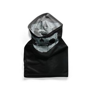 Carve your presence into the shadows with the Stone Skull Snood, a design that looks like it was chiseled straight from a crypt. With a distressed, fossilized skull print spanning the lower face, this snood delivers pure intimidation with ancient energy.