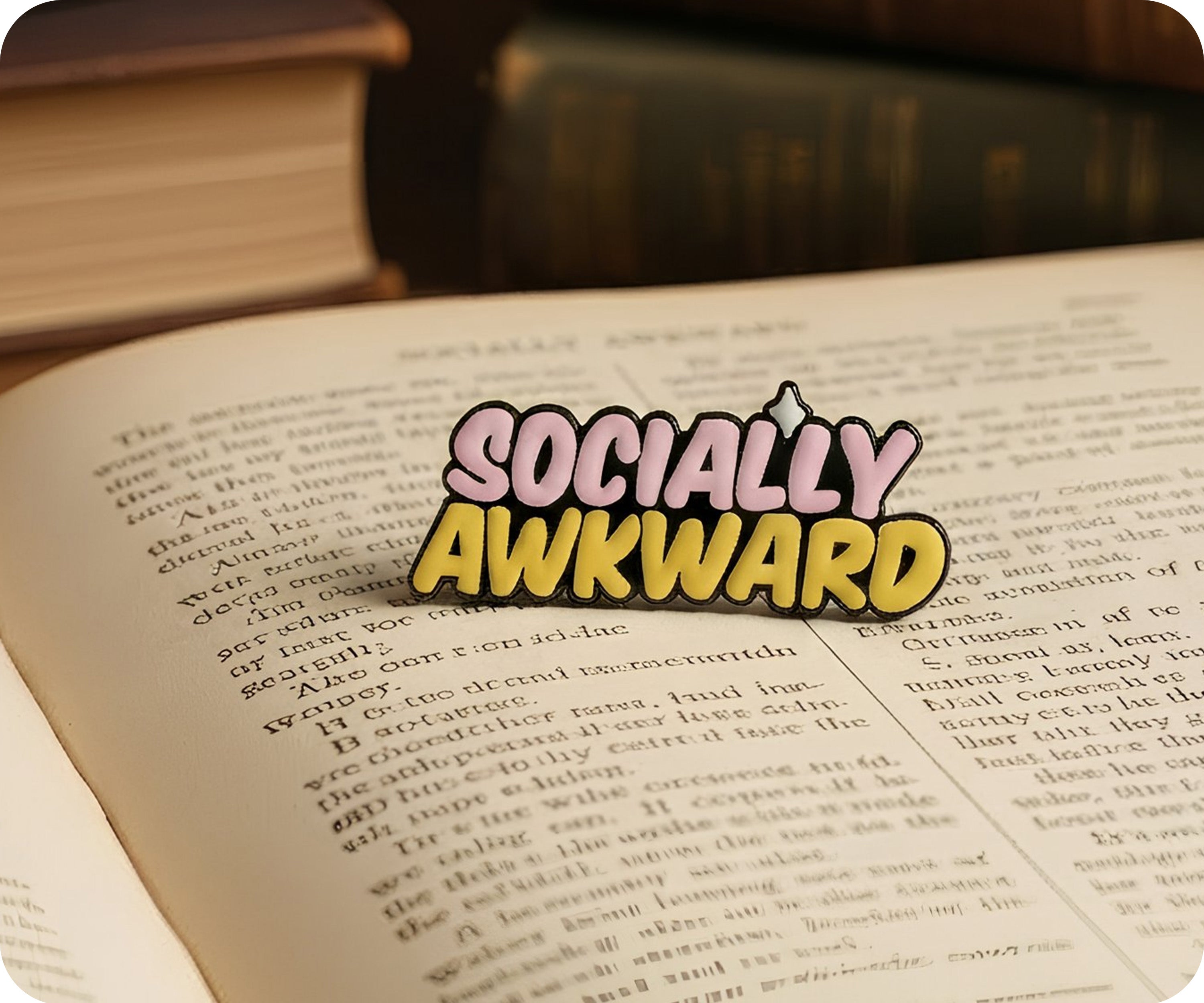 Indulge your awkward side with this playful badge that boasts your social discomfort. Perfect for those uncomfortable social situations. Wear it proudly (or not) and let the world know you're not afraid to embrace your social awkwardness!