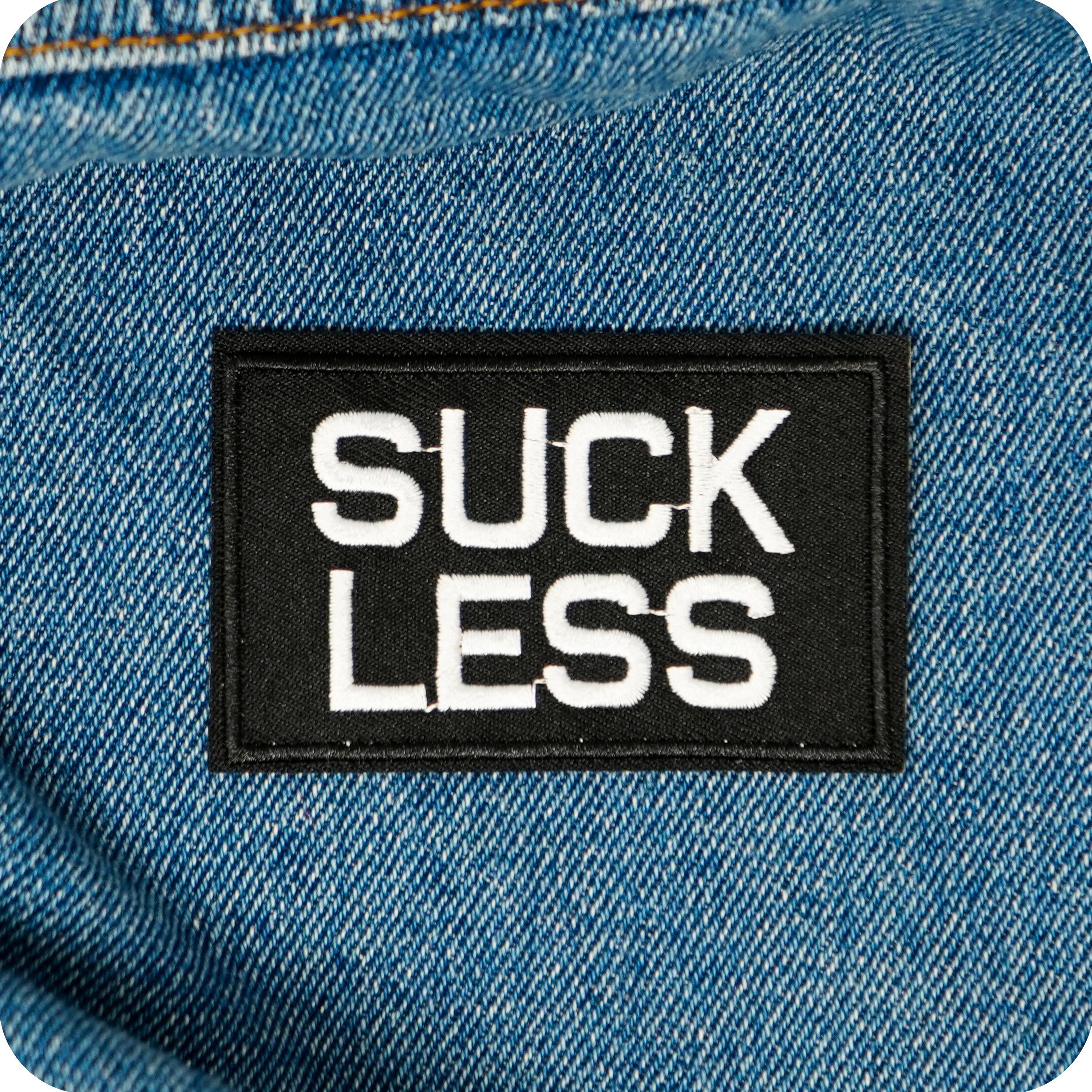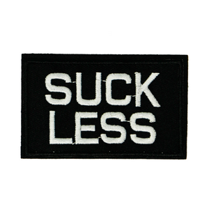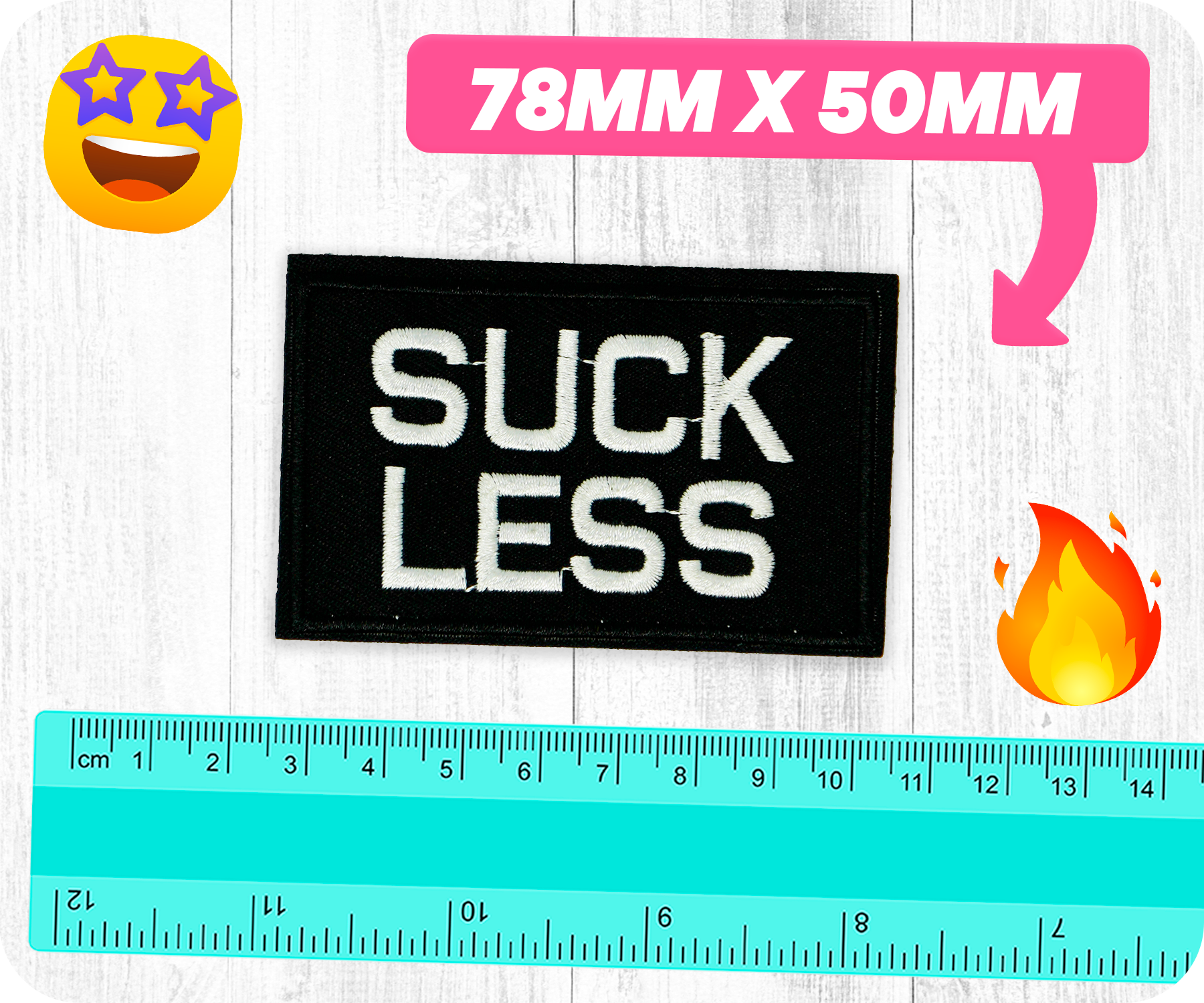 Suck Less Black Iron On Patch (7.8 x 5cm)