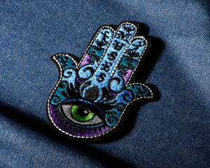 Ward off bad vibes and fashion faux pas with this mystical Hamsa Hand Fatima patch! Measuring a protective 9 x 7cm, this iron-on talisman brings ancient good luck to modern jackets, bags, or hats. Perfect for spiritual explorers, protection seekers, or anyone who could use an extra dash of cosmic defense against the evil eye (and boring style choices)! No need for a spiritual journey – this palm-sized protector brings all the good energy without the plane ticket to Morocco. Your accessories just called and they're feeling blessed already!