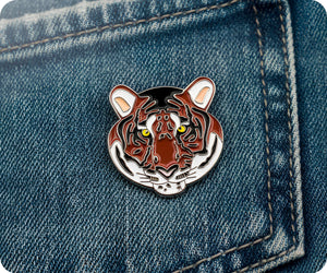 Unleash your wild side with our Tiger Pin Badge! This fierce accessory is the purr-fect addition to any outfit. Show off your love for these majestic creatures with our unique pin. Roar with style and make a statement. (But don't worry, it won't bite!)