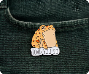 Hop on the trend with our Toad You So Pin Badge! This quirky accessory is perfect for expressing both your love for amphibians and your witty sense of humor. Wear it on your jacket, bag, or hat for a unique and playful touch. Croak on and get your Toad You So Pin Badge today!