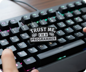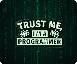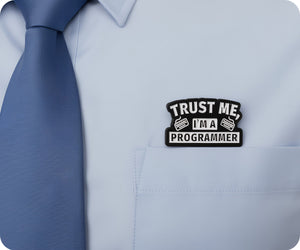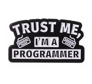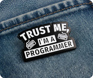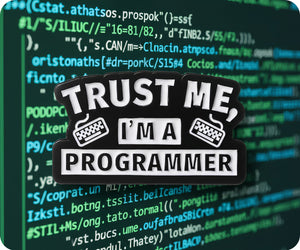 Show off your programming prowess with this Trust Me I'm A Programmer Code Pin Badge! This stylish accessory will let everyone know that you are a skilled coder and someone to be trusted. Perfect for adding a touch of personality to any outfit and sparking conversation.
