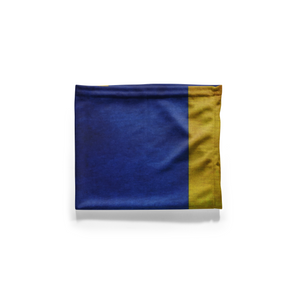 This gaiter showcases the iconic vertical layout of the Ukrainian flag in a richly textured design. The left half features a deep cobalt blue, symbolizing the sky and peace, while the right half carries a golden yellow hue representing the country’s wheat fields and prosperity. The worn-in texture gives the design a sense of history and resilience.