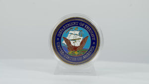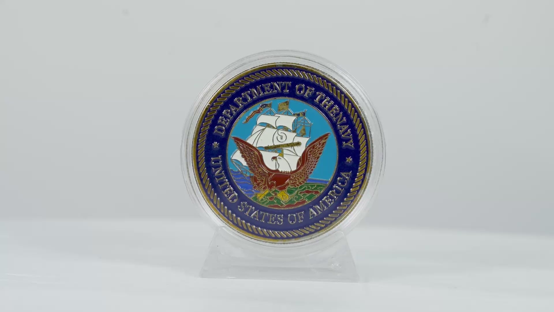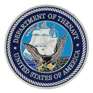 🦅 Front Side: "Department of the Navy – United States of America" insignia featuring the classic bald eagle and tall ship over vibrant ocean blue